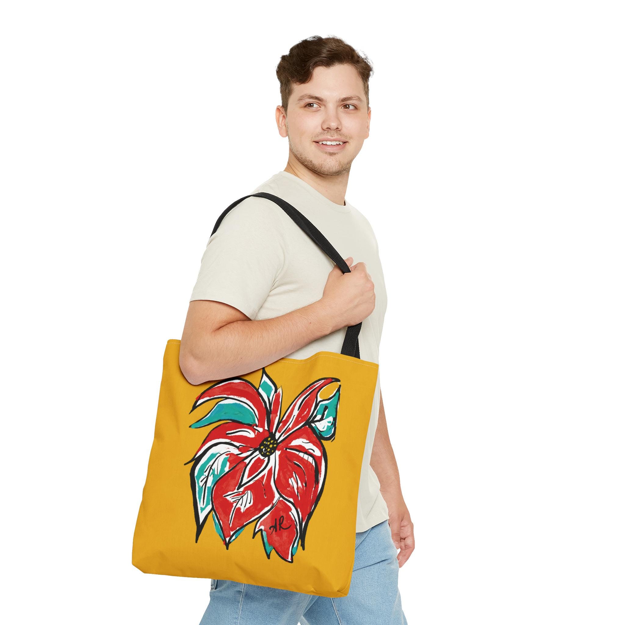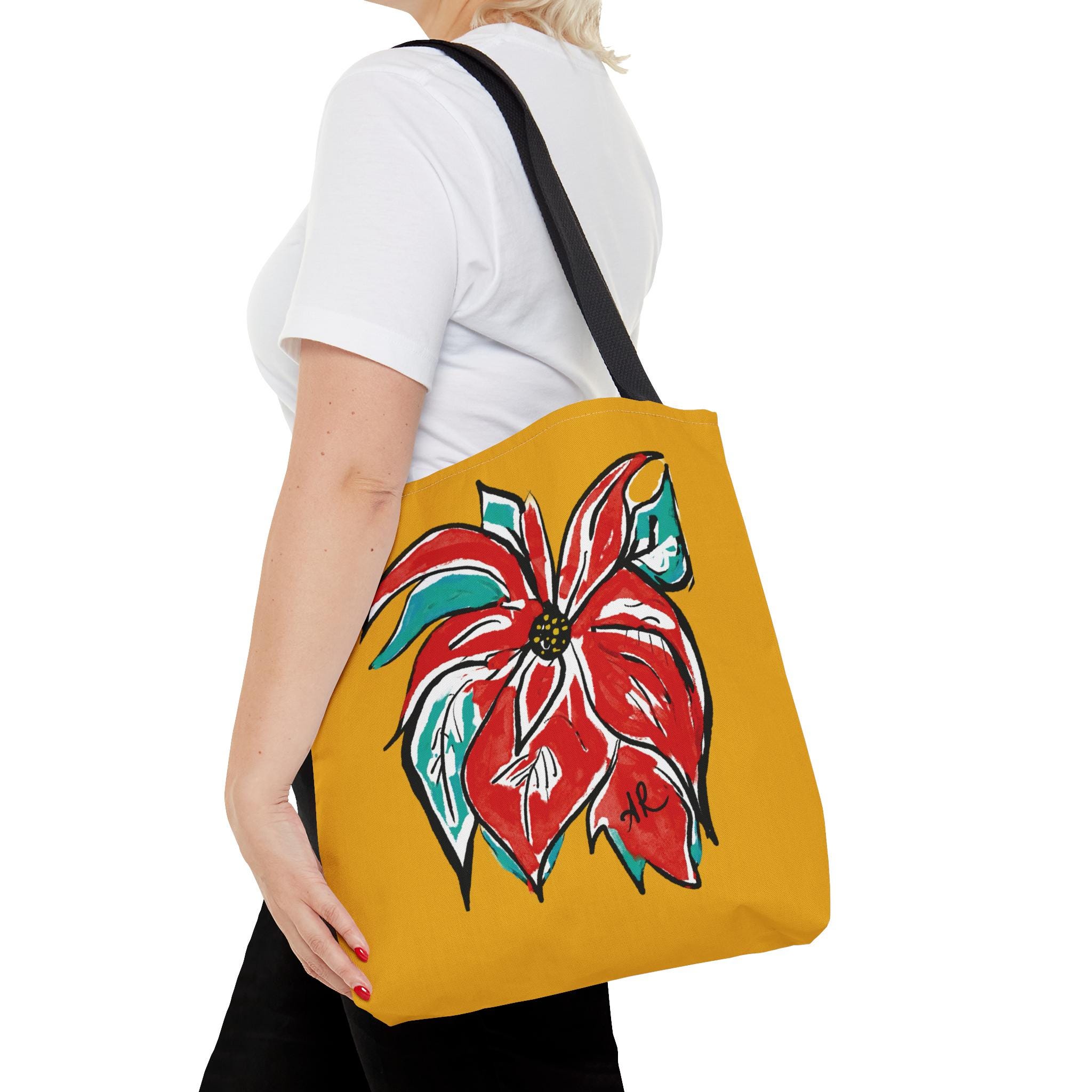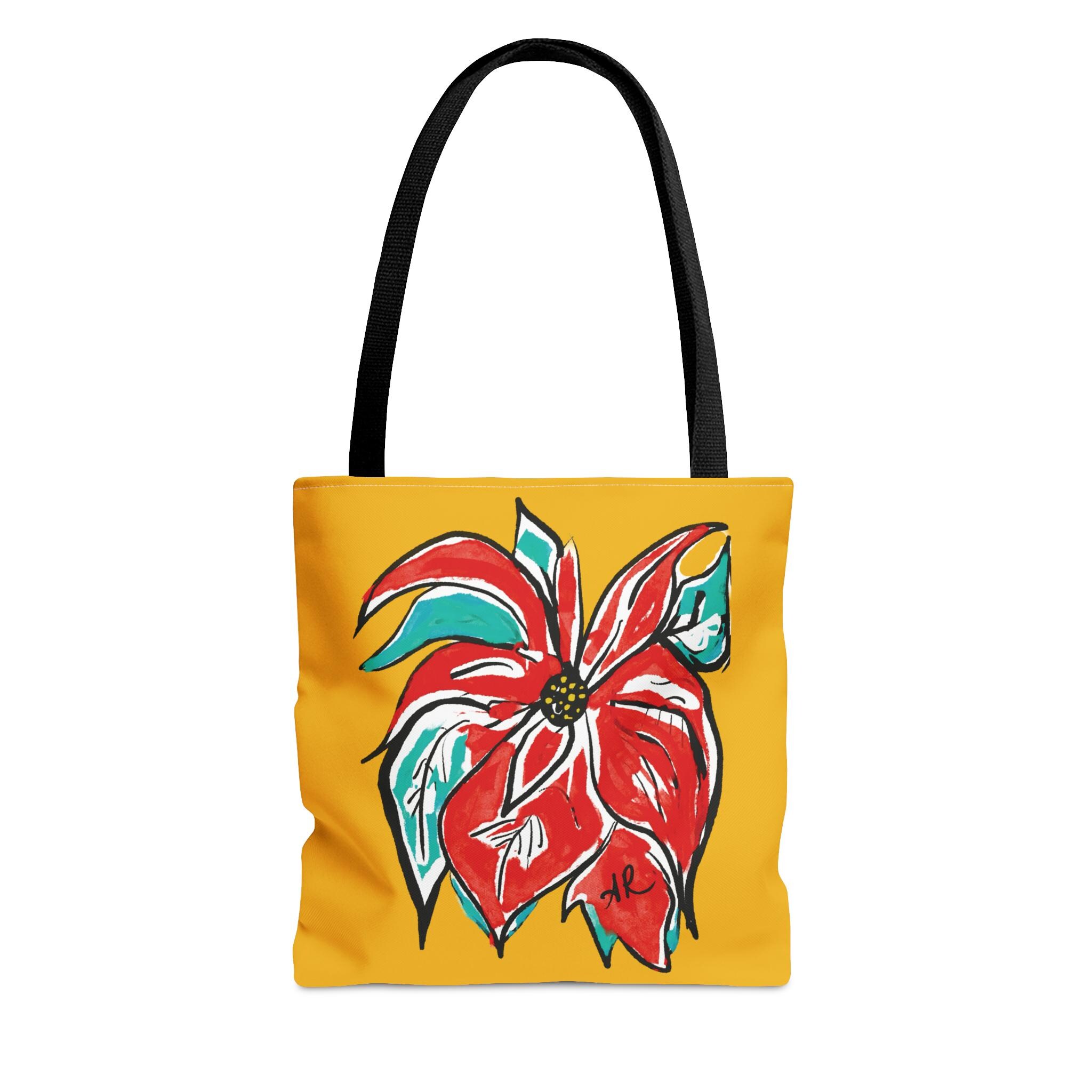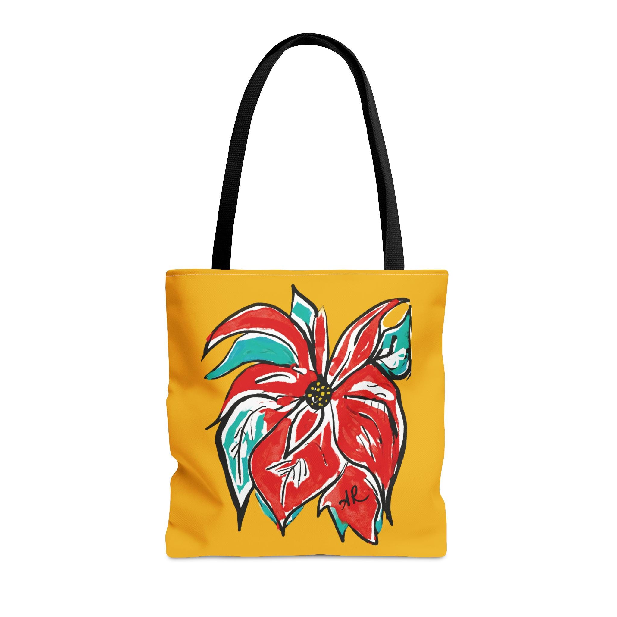 AbstractArtMom has a brand-new floral design, “Settia”, named after one of my favorite flowers. Known for it’s vibrant reds, I love how this design stands out, making this sturdy tote stand out.  This festive design can be a perfect accessory to a simple outfit. This practical, high-quality Tote Bag is available in three sizes. All over print provides comfort with style at the beach or out in town. Made from reliable materials, lasting for seasons.
