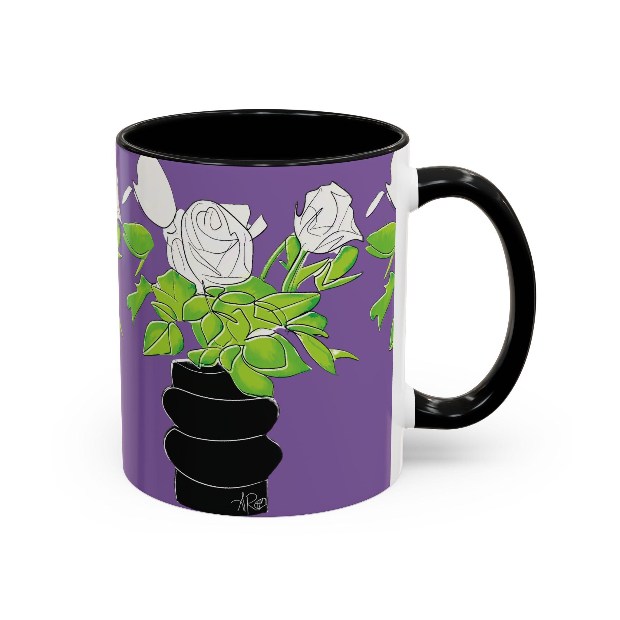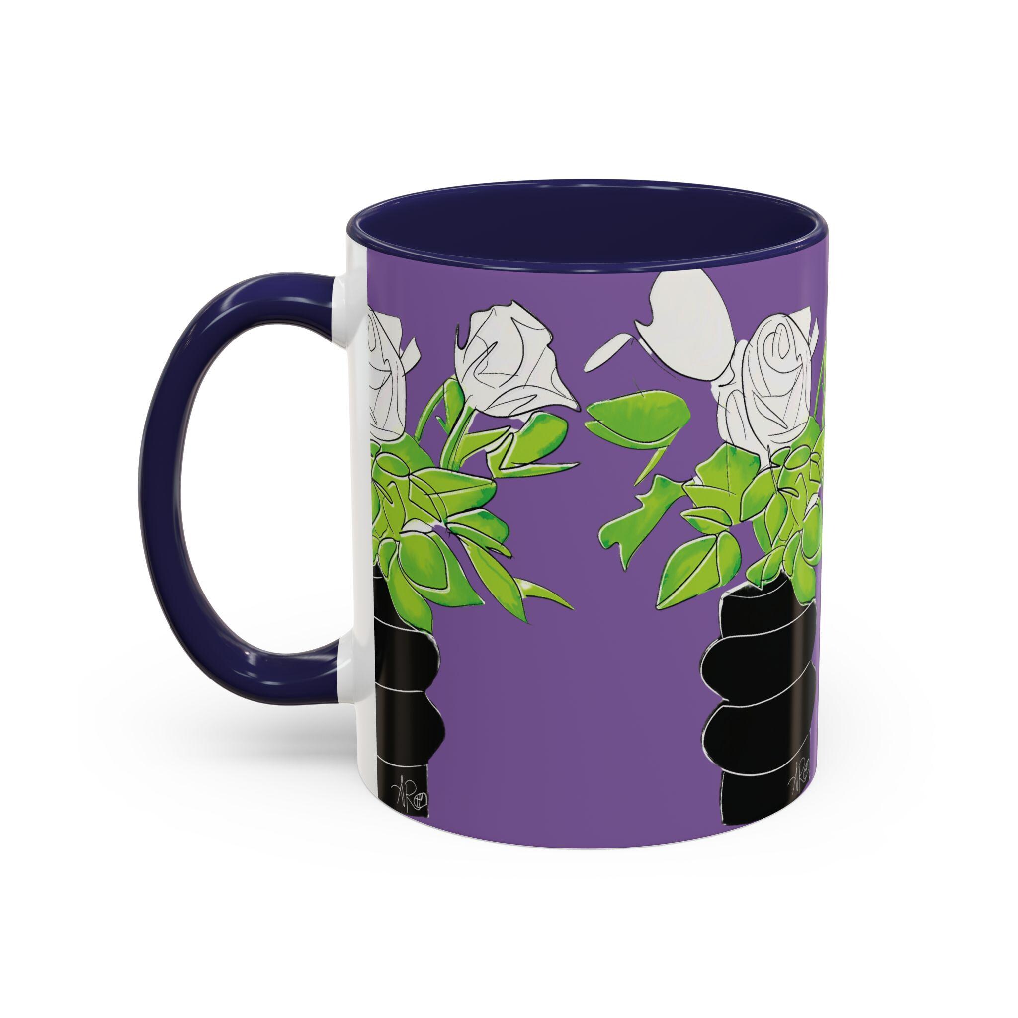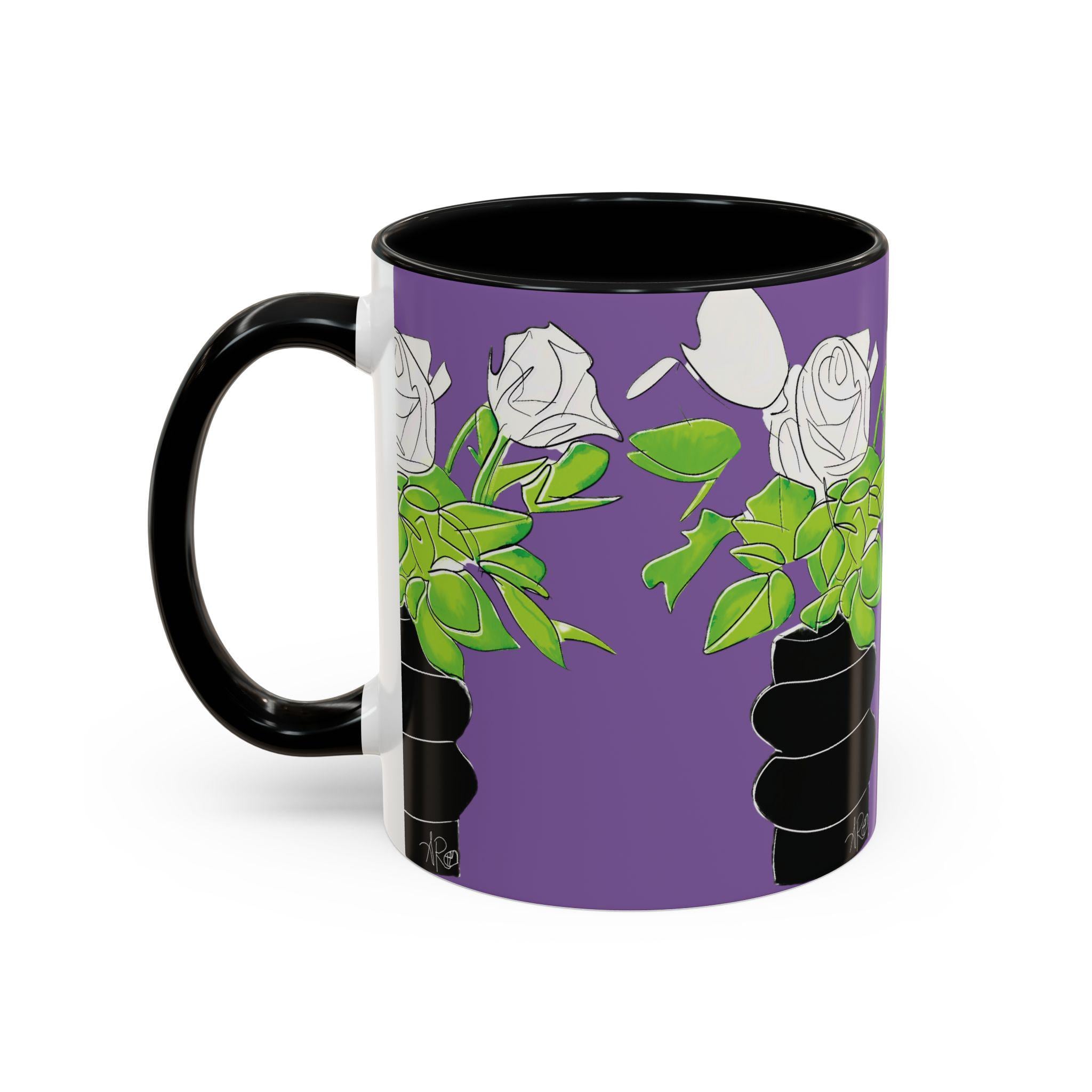 Bright, bold, and unapologetically stylish — this ceramic mug brings pop-art attitude to your morning ritual. A striking portrait wraps the cup in vivid teal, purple, and black tones, accented by dramatic lashes and a statement pearl necklace. The colored interior and handle create a striking contrast that makes every sip feel like an art moment. It’s the kind of mug that lives on a creative desk, spills conversation at brunch, and makes your coffee break feel curated and alive.