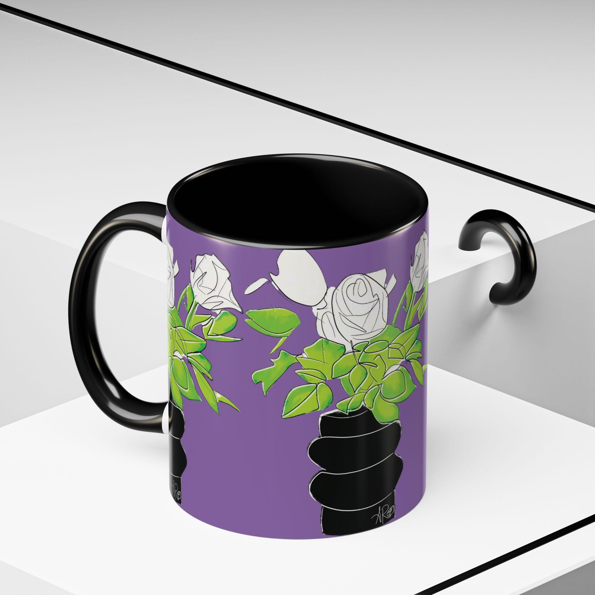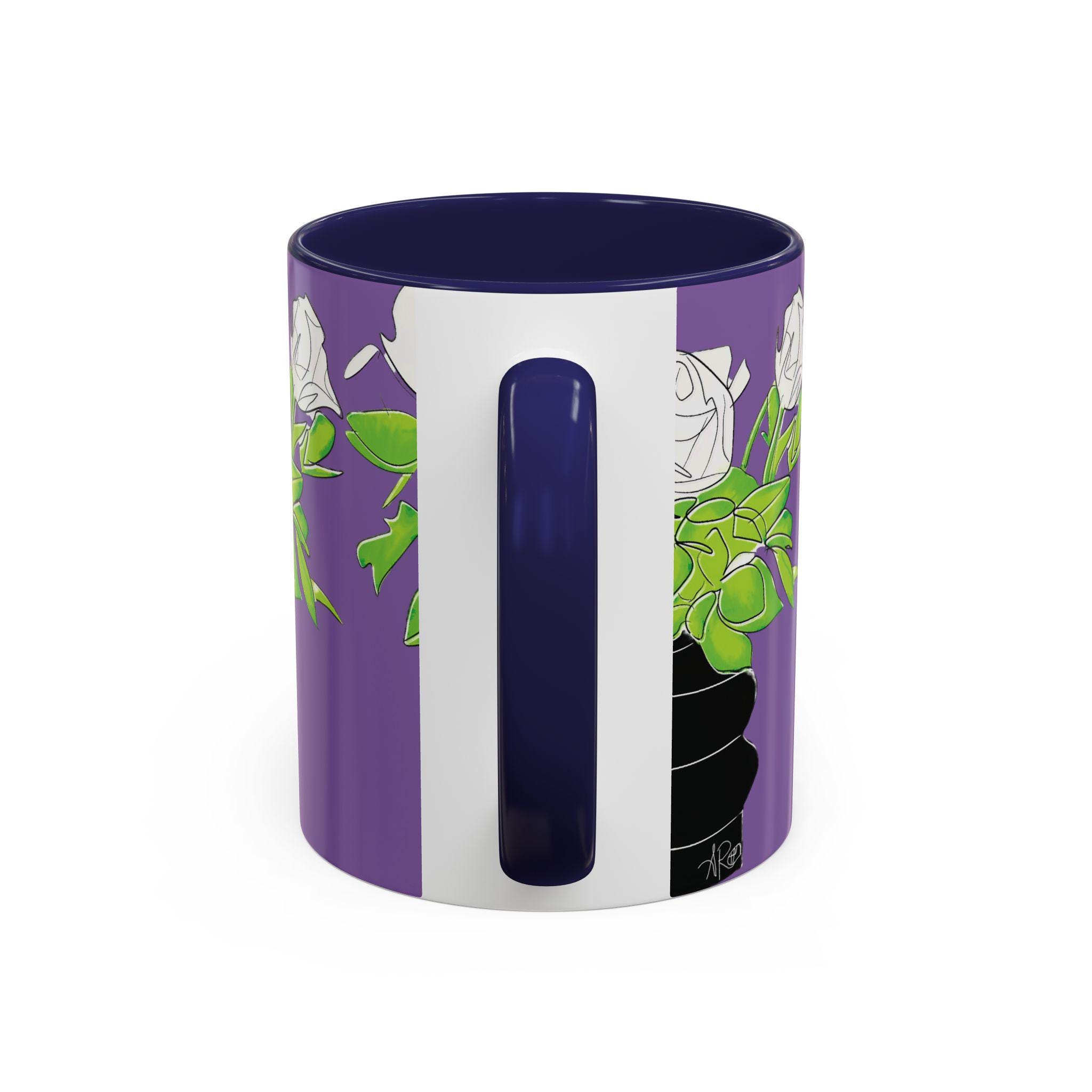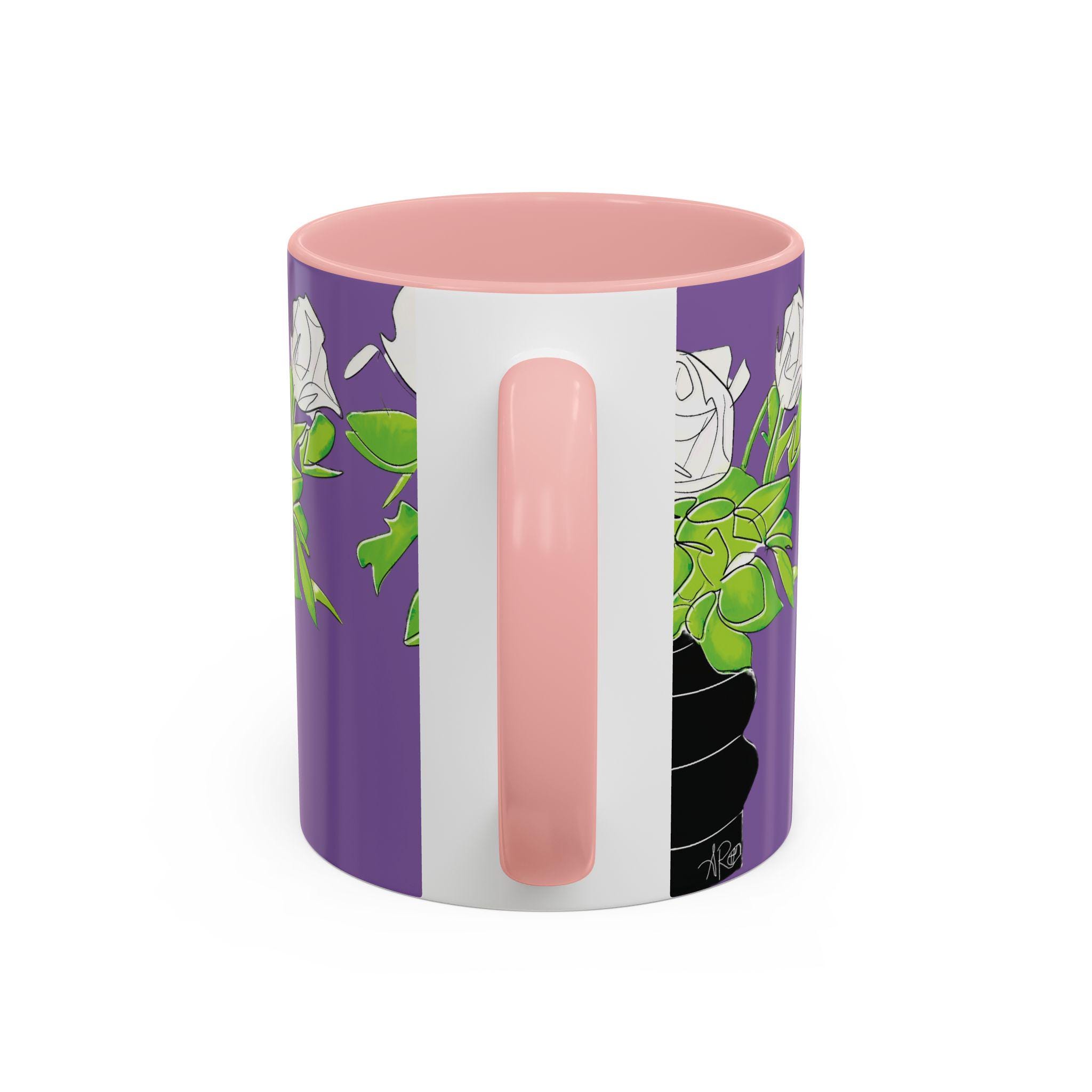 Bright, bold, and unapologetically stylish — this ceramic mug brings pop-art attitude to your morning ritual. A striking portrait wraps the cup in vivid teal, purple, and black tones, accented by dramatic lashes and a statement pearl necklace. The colored interior and handle create a striking contrast that makes every sip feel like an art moment. It’s the kind of mug that lives on a creative desk, spills conversation at brunch, and makes your coffee break feel curated and alive.