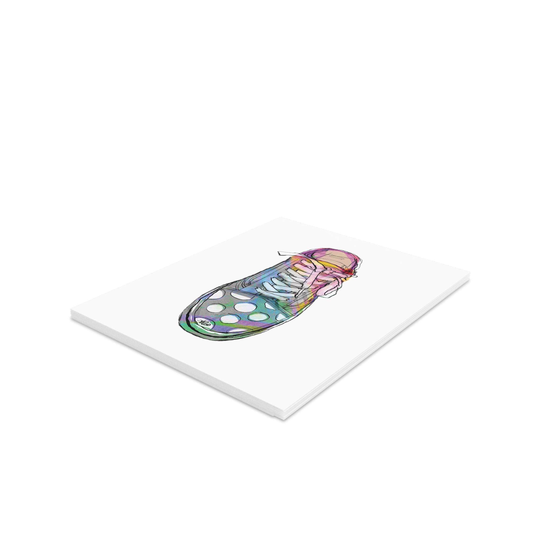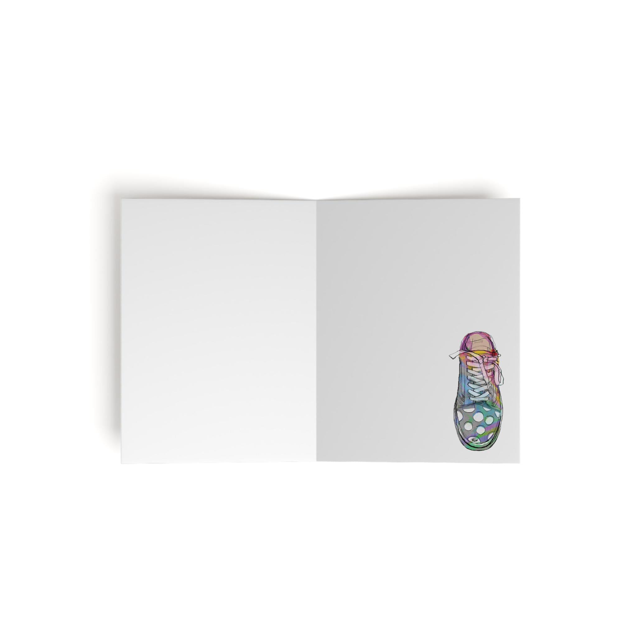 Enjoy my favorite kicks turned shop graphic on this timeless greeding card. Add a unique touch to any wish with these personalized greeting cards. Measuring at 4.25” x 5.5”, these printable cards can handle long-distance transportation with minimal risk thanks to their robust, uncoated cardstock. Available in 8-packs, 16-packs, and 24-packs - each pack comes with size-matching white envelopes for each card.